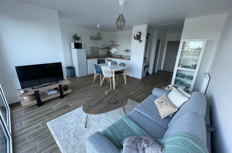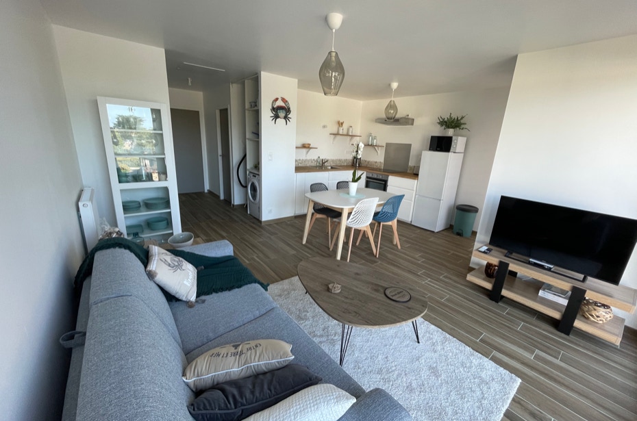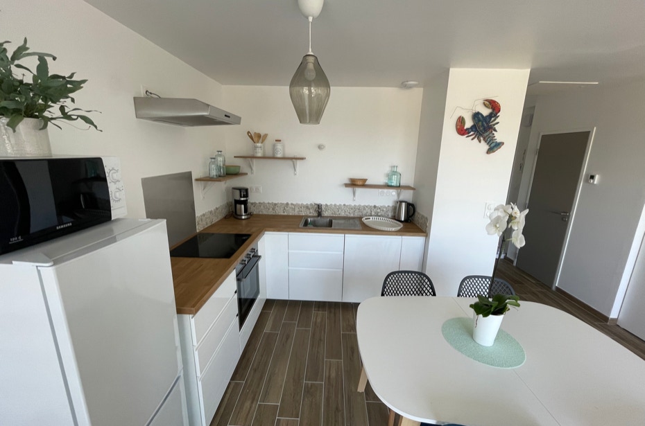 Loue à la semaine en saison du samedi au samedi, 2 appartements (babord, tribord) neufs d’une capacité de 4 personnes chacun, sur le port de l’Aber-Wrac’h, vue sur mer, entièrement équipés.